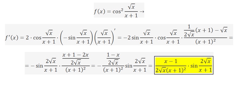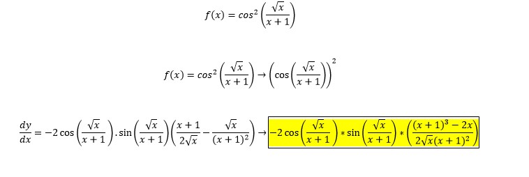 Buenas. Me podrían ayudar (detalladamente si es posible) con esta derivada? lo intenté muchas veces y no me da el mismo resultado que tengo en el libro.
