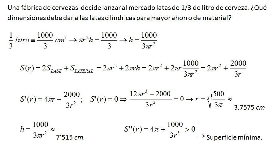 Me piden calcular: las dimensiones (radio y altura) del cilindro para que la cantidad (area superficial) de lamina metalica sea Minima!