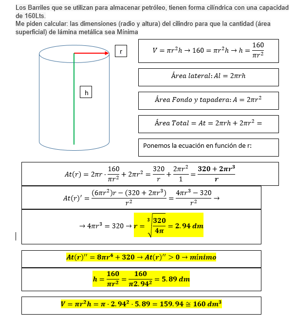 Los Barriles que se utilizan para almacenar petroleo, tienen forma cilindrica con una capacidad de de 160Lts.