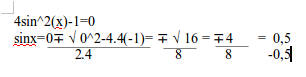 Por otro lado tenemos que el sen x = -0.5→x= arcosen -0.5= 210 x((rad)=2π·210/360=7/12π y también de 330º que es en (rad) =2π·330/360=11/12π,
