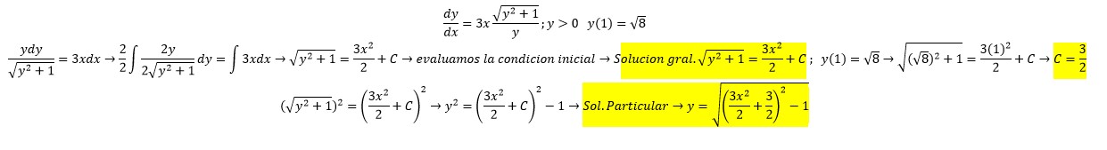 Y por último hacemos pasaje de potencia como raíz, y de acuerdo con la condición inicial elegiremos la raíz cuadrada positiva ya que y>0: