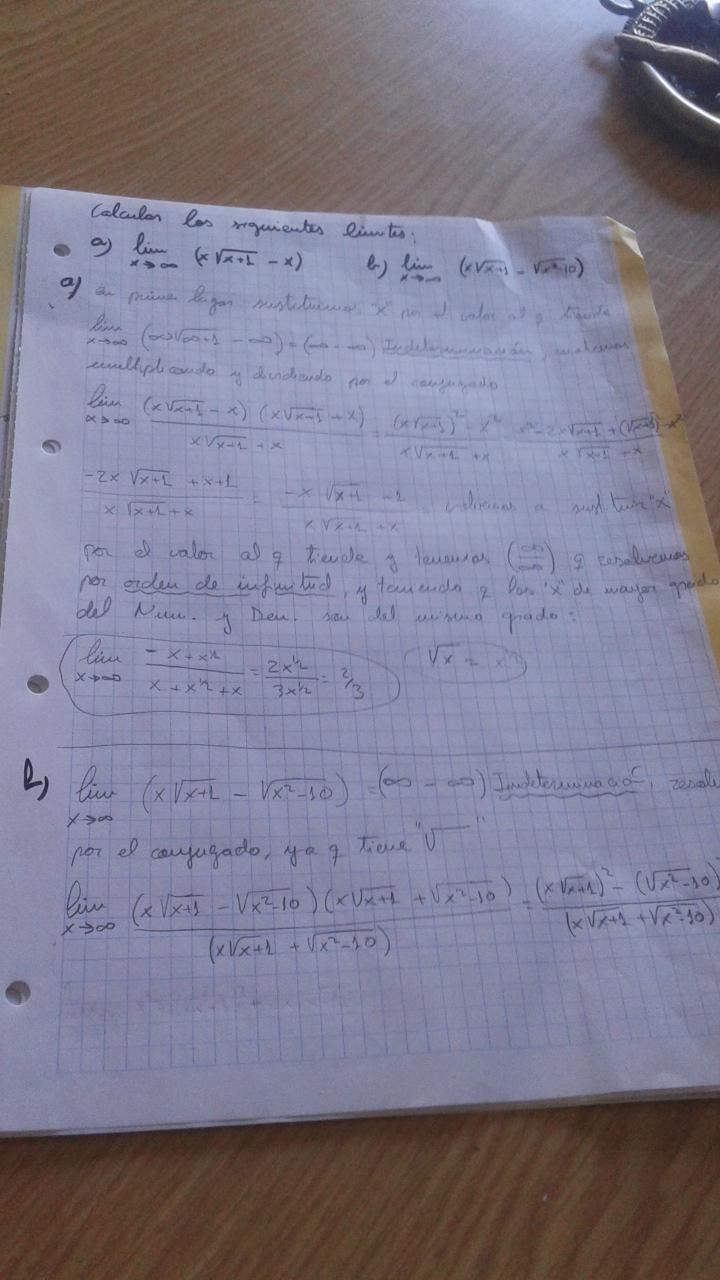 Hola a todos, alguien me ayuda con estos limites?? El primero no se si lo tengo bien resuelto y en el segundo...me he atascado...gracias de antemano