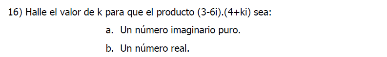 igualas 3ki-24i=0 entonces k= 8 PARTE IMAGINARIA
