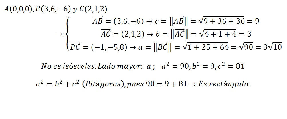 los tres puntos forman un triangulo. Determinar cuáles triángulos son isósceles y cuales son triángulos rectos.