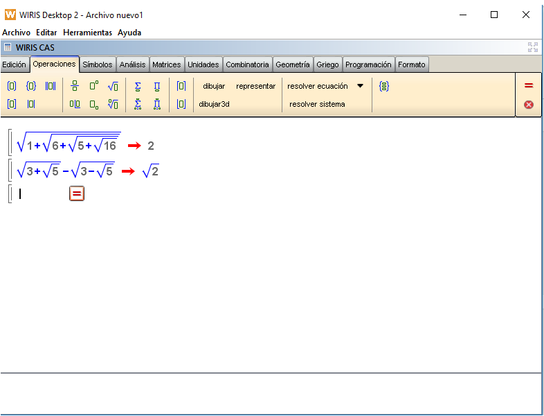 ahora llegaste a la ultima raiz de 1+3, seria raiz de 4, pero 4 lo podes expresar como 2^2, y como tenes raiz cuadrada de un numero elevado al cuadrado, se simplifica, y tenes de resultado 2