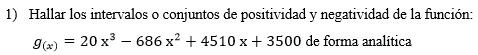 Hola unicoos, mi duda consiste en aprender a como hallar de forma puramente analítica sin realizar ninguna gráfica los intervalos de positividad y negatividad de la siguiente función: