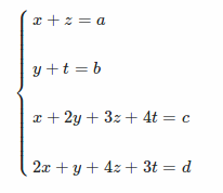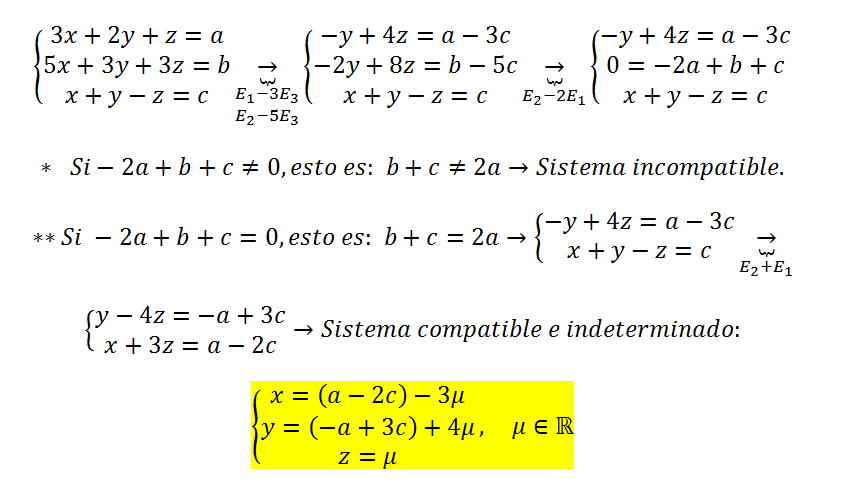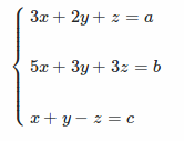 Encontrad qué condiciones tienen que cumplir los parámetros a,b,c∈ℛ a fin de que los sistemas sean compatibles y, en este caso, encontrad la solución general.