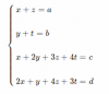como el sistema de ecuaciones tiene 4 incógnitas, tienes que el sistema puedes ser incompatible o compatible indeterminado, ésto último con la condición remarcada: a - b + c = d, con la que hemos probado que el sistema es compatible determinado con un grado de libertad.