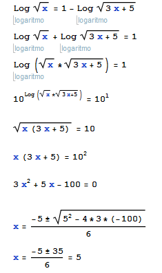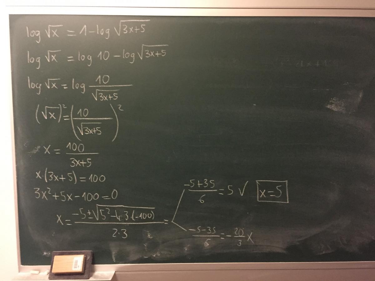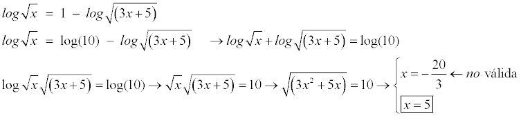 log√x = 1 - log√(3x+5)