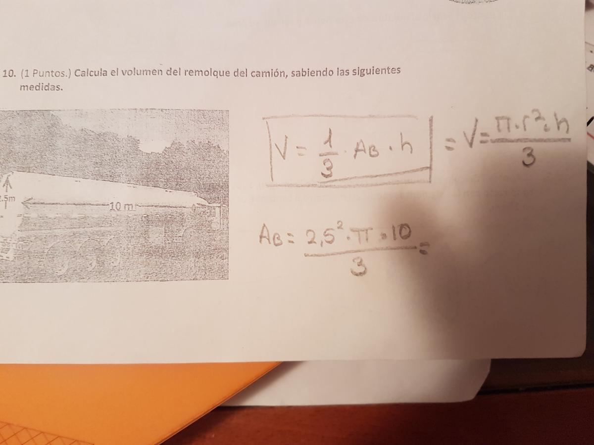 'Ahh es verdad,no me había dado cuenta,entonces aqui sería es un cilindro:asi que es y seria 3,14xr2xh(altura)=es decir 3,14x2,5 al cuadradox10=?