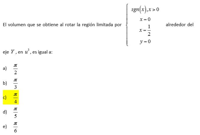 V = π*∫ (1/2 - 0)2*dy = (π/4)*∫ dy = (π/4)*[ y ] = evaluamos = (π/4)*(1 -0) π/4 u3.