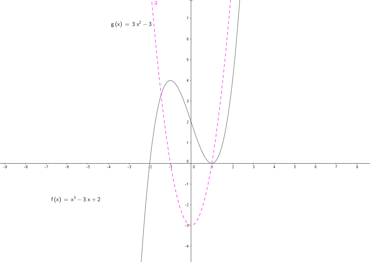 revisa el crecimiento y decrecimiento , mira la grafica de la curva y su derivada(en azul a trozos) y observa que es negativa entre -1, y 1, decrece.