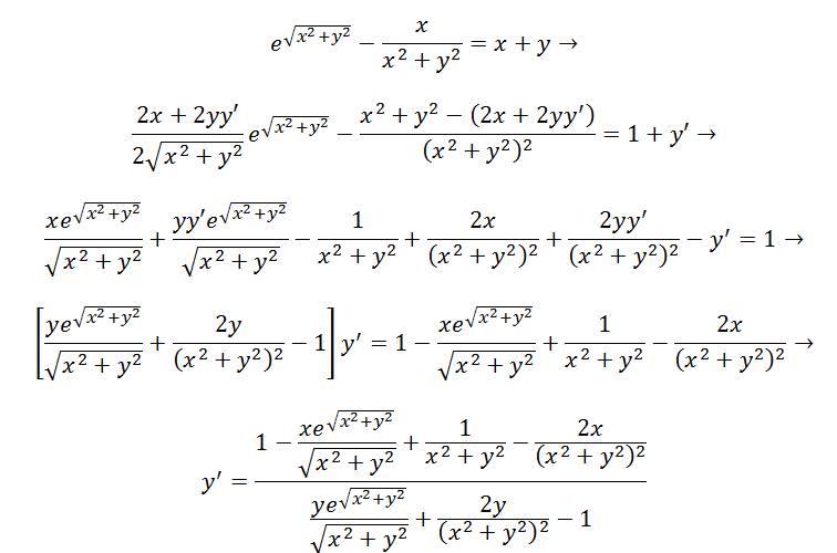 HOLA A TODOS , PUEDEN AYUDARME A REALIZAR ESTE EJERCICIO , ES DE DERIVACIÓN IMPLÍCITA , SOLO PUEDO DERIVAR Y AHÍ QUEDO EN BLANCO , NOSE COMO SEGUIR . SALUDOS Y GRACIAS!
