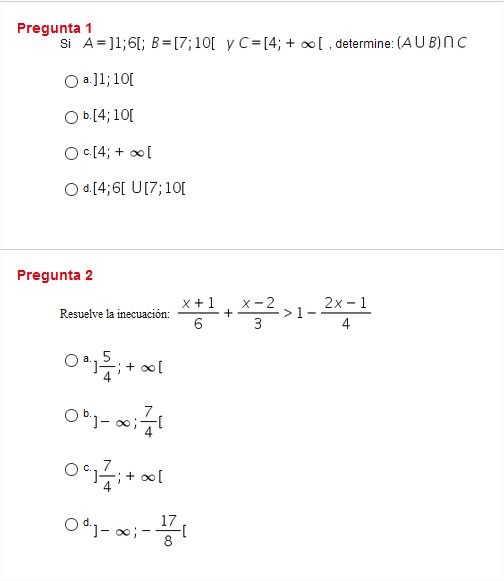(A ∪ B)∩ C= (]1,6[ ∪ [7,10[) ∩ ([4,inf[) = ( [4,6[ ∪ [7,10[ )