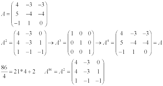 Me podríais hacer por favor A^86 cuando A=(4 -3 -3)  (5 -4 -4)  (-1 1 0)    Gracias.
