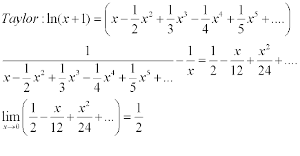 Por favor ayuda con lim x->0 de 1/L(x+1) - 1/x, necesito que sea con polinomio de Taylor, gracias