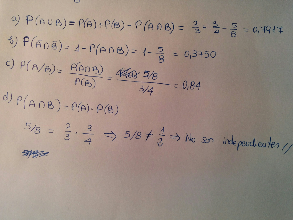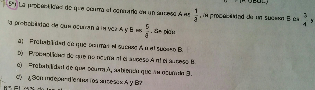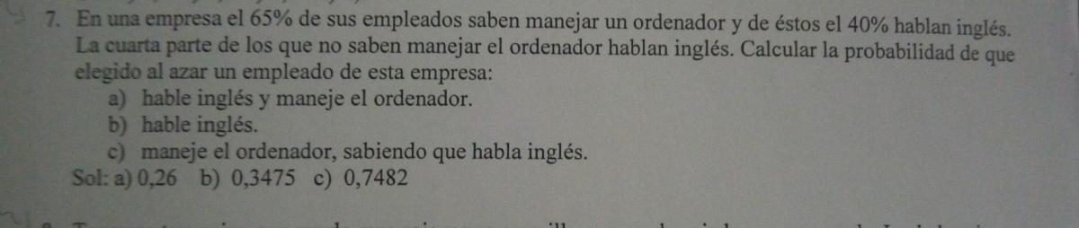 Este ejercicio no lo he planteado como probabilidad de sucesos porque me dan datos de la vida real pero el a) sé que lo tengo mal porque me da mayor que uno.