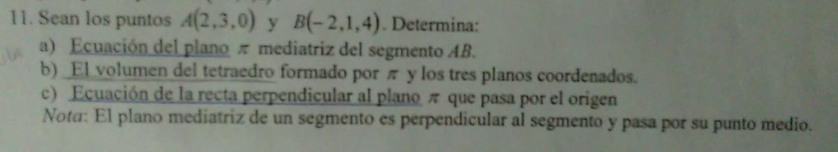 b) Halla las coordenadas del punto B que es simétrico del punto A respecto de π.