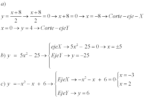 Me piden hallar los puntos de corte con los ejes de las funciones: