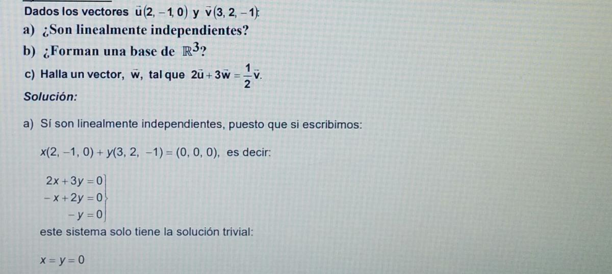 por lo tanto, tienes que los vectores u y v son linealmente independientes.