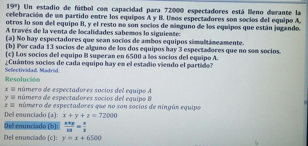 Observa que (x+y) expresa la cantidad de espectadores asociados, y que (x+y)/13 expresa la cantidad de grupos de 13 espectadores no asociados que hay en el estadio.