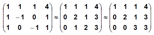 Puedes multiplicar por 3 en todos los términos de la tercera ecuación, y queda: