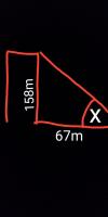 Un edificio de 158 metros de alto proyecta una sombra de 67 metros, ¿cuanto mide el angulo de elevacion del sol en ese instante?