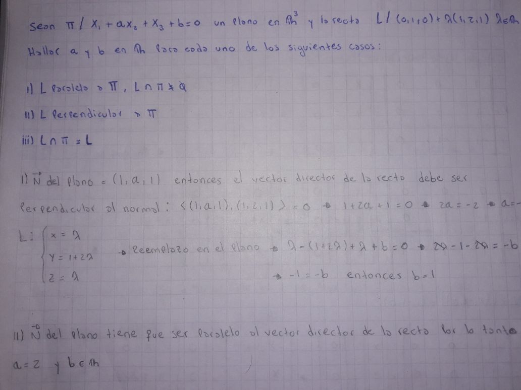 Si, lo sé, a lo que me refiero es que el valor de b≠1 genera que la recta no esté en el plano, lo cual no satisface a la segunda condición del inciso 1. Por eso preguntaba que si la respuesta del inciso 1 y 3 podrían ser las mismas porque ambas satisfacen las condiciones. Disculpe las molestias