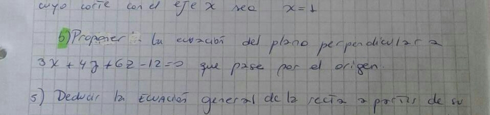 Buenos días, me pide 'proponer la ecuación del plano perpendicular a P:3x+4y+6z-12=0 que pase por el origen'