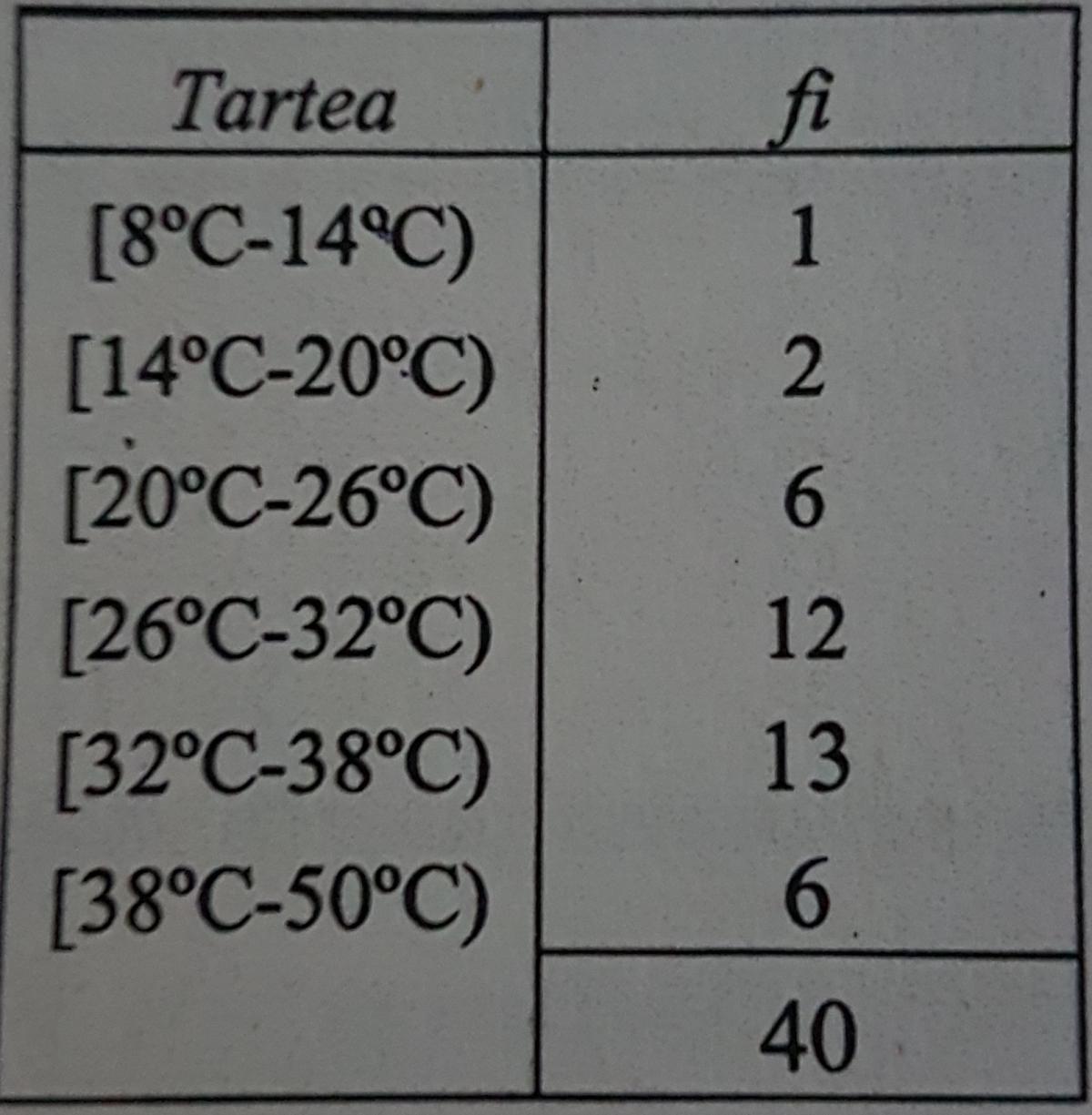 En estadística dice así el ejercicio: de la siguiente tabla de frecuencias (n = ciudades) saque: las ciudades en las que la temperatura máxima haya sido más alta que 42ºC y las que no superaron como temperatura máxima los 10ºC .