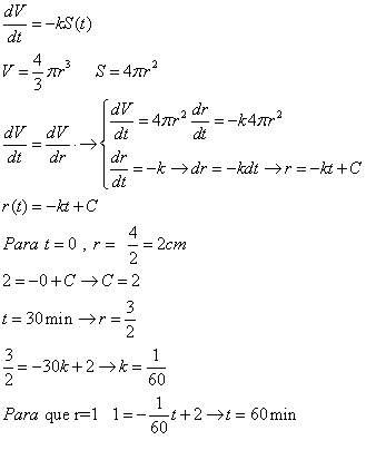 que es la expresión del radio de la bola en función del tiempo para las condiciones planteadas en tu enunciado.