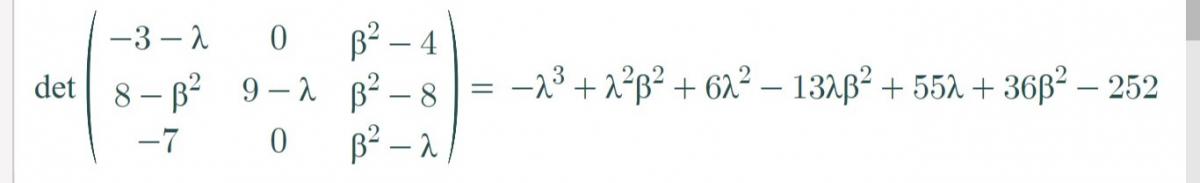Nota: Yo ya hice el determinante de (A-λI) pero de hay no se como hallar los valores de λ y β.