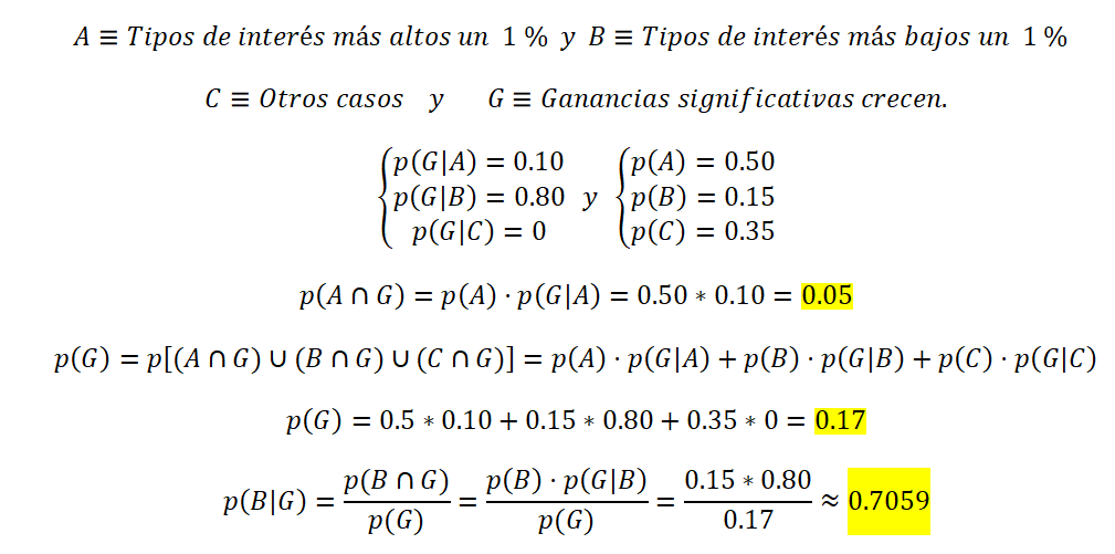 de las ganancias es 0,10. Si los tipos de interés medios son un 1% más bajos que este año la probabilidad