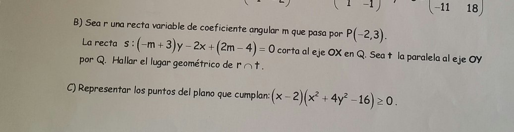 x = m - 2, por lo que el punto de intersección de la recta s con el eje OX queda: