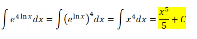 Podríais explicarme el último paso de vuestra integral?. No entiendo pq se llega a x^4, quizás sea una propiedad de los números e?
