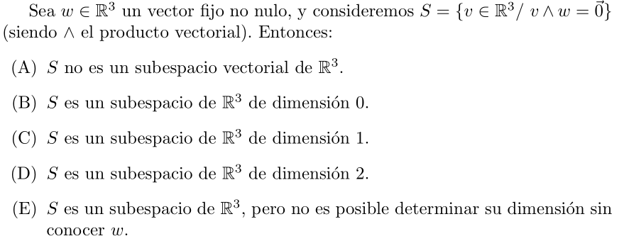 ¿Cómo se podría resolver esto? Ya sé que si w∧v = 0 entonces w y v son ortogonales, por lo que supongo que el espacio será el de todos los vectores v tal que v sea ortogonal a w. No sé como seguir ni estoy muy seguro de lo que dije