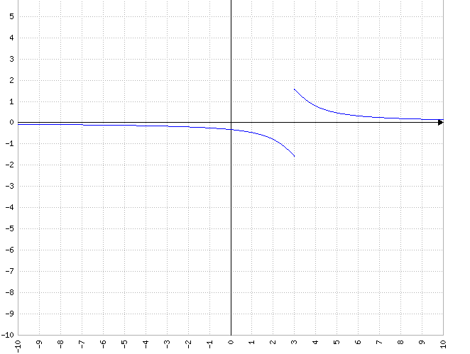 es asíntota vertical de la gráfica de la función, inferiro por izquierda y superior por derecha.
