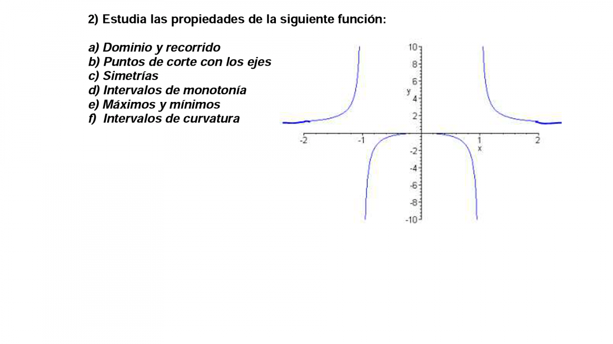 Observa que la gráfica es simétrica con respecto al eje OY, por lo que tienes que la función es par, y se cumple: f(-x) = f(x) (en forma práctica, si pliegas el gráfico tomando al eje OY como recta de plegado, tienes que las dos partes de la gráfica se superponen).