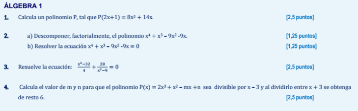 P(x) = 2*x3 + x2 - m*x + n (1), con los coeficientes m, n que debes determinar;
