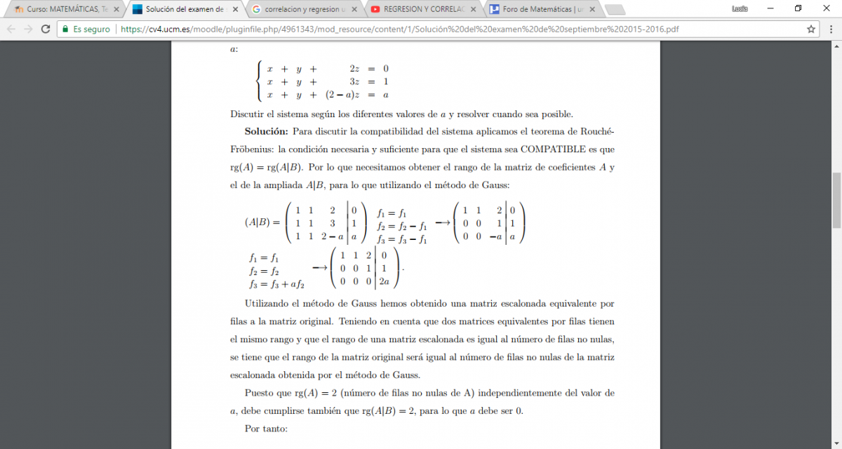 En este ejercicio no termino de entender hasta donde se reduce la matriz con Gauss.