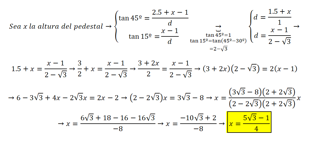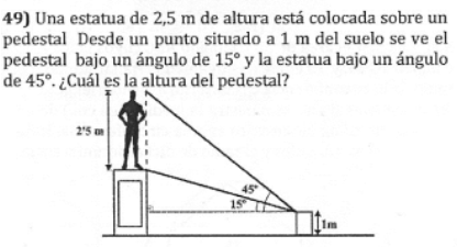 En este ejercicio, como las líneas oblicuas ni las dan ni las piden, es más complicado usar el Teorema del Seno.