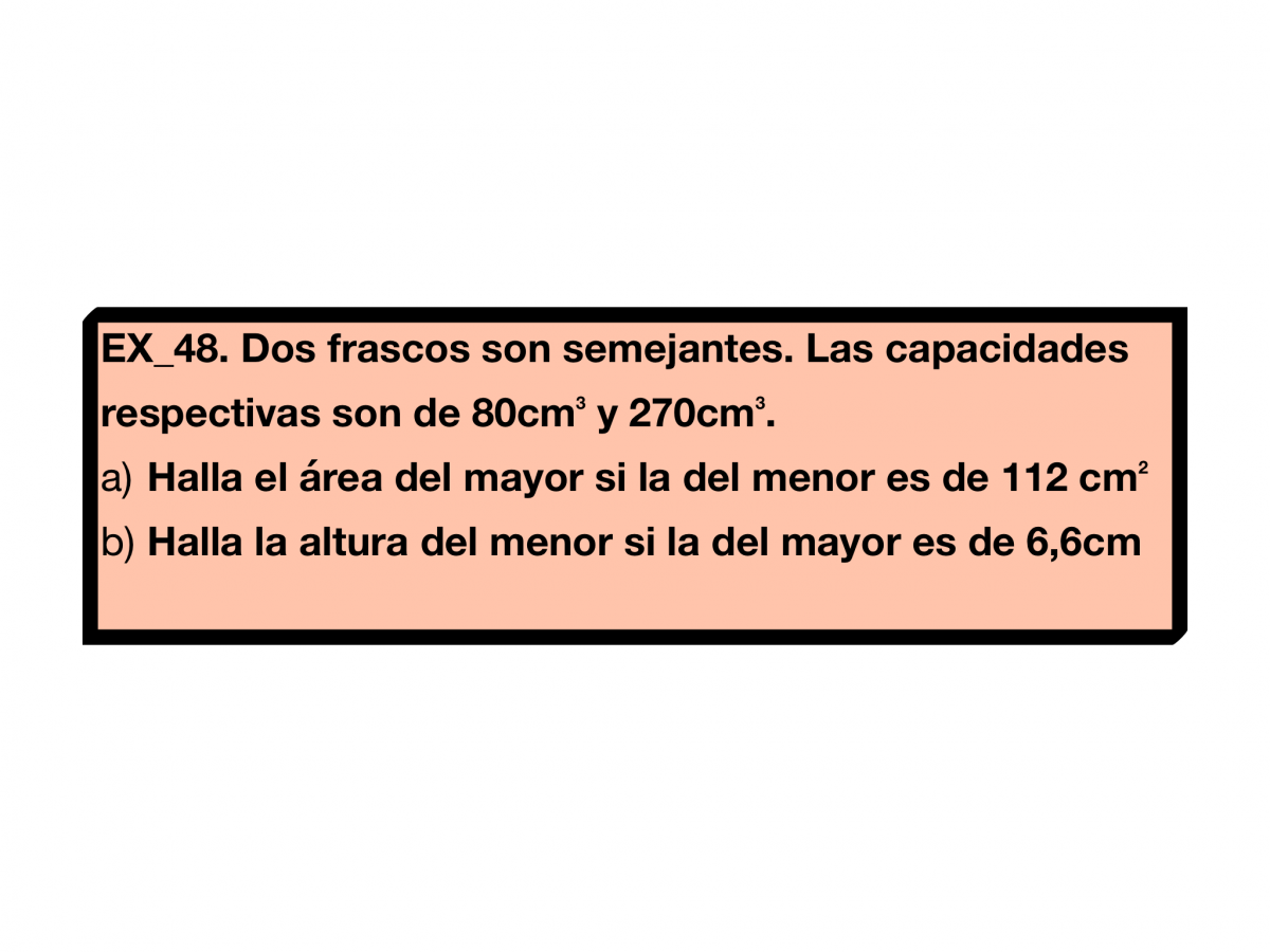 1) Los volúmenes son proporcionales a los cubos de sus partes homólogas (alturas , lados o aristas , medianas , bisectrices , etc)