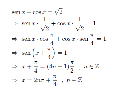 concluimos que x=arcsen( (√2)/2) = 45º + 360ºK