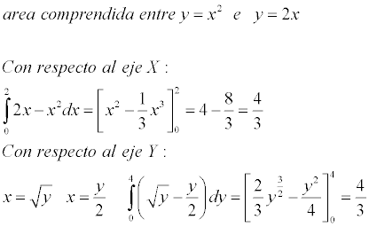 Y obviamente una misma curva forma regiones diferentes con el eje Y y con el eje X , pero no deja de ser una región que se puede calcular de manera conveniente como se indica arriba .