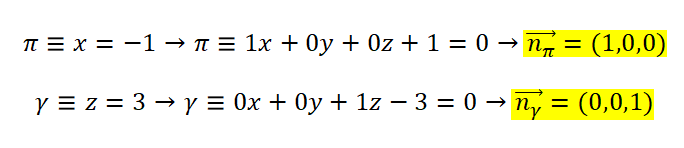 1*x + 0+y + 0*z = -1, por lo que uno de sus vectores normales es: na = < 1 , 0 , 0 >.