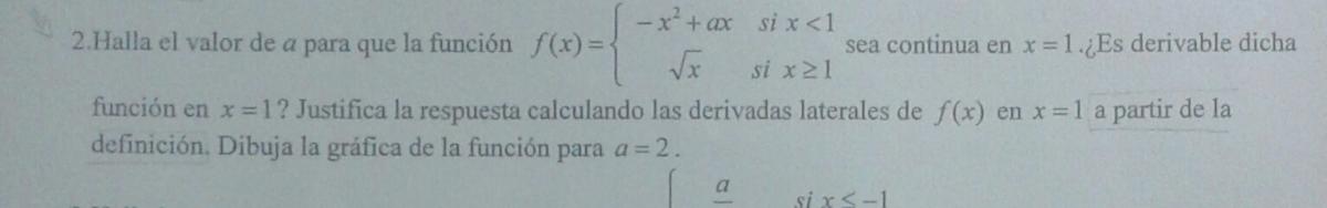 Queda para plantees y calcules las derivadas laterales para x =1 por medio de la definición.