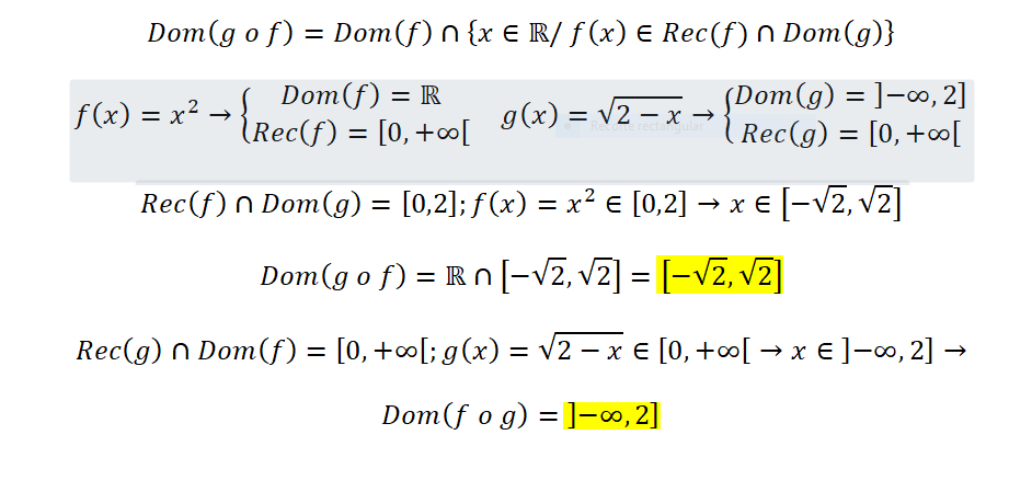 Recuerda que un elemento x perteneciente al dominio de la función compuesta debe cumplir dos condiciones: