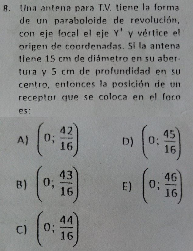 45/16 = c, que es la distancia entre el vértice: V(0,0) y el foco de la parábola: F(0;45/16).
