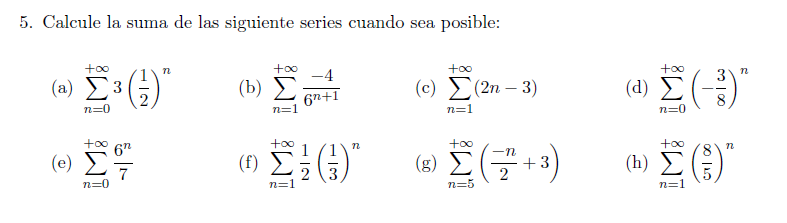 2. Sumas de series: sumatorio +infinito n=5(-n/2+3)
