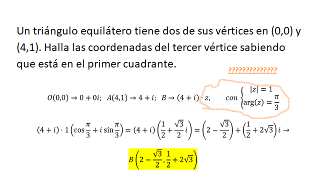 Luego, debes encontrar el tercer vértice: C(x,y), que representa al número complejo: c = x + yi.